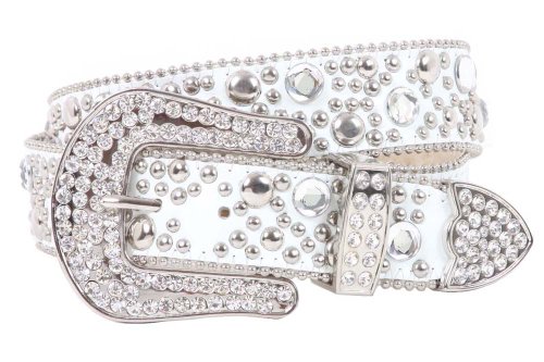Snap On 40mm Western Rhinestone Rivet Studs Leather Belt Size: M/L - 35" Color: White Product Description: