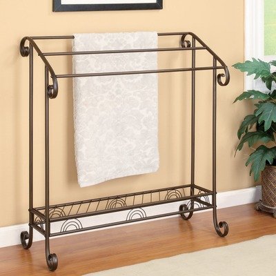 This great looking towel rack holds my oversized bath towels without letting them drag on the floor. Our very large bathroom strangely does not have anywhere near the shower to mount towel bars. This sturdy stand alone rack is the answer. It was super easy to assemble for my mechanically DYI challenged abilities. I love the bronze finish I chose. It can hold 6 towels folded or 3 towels spread out single layer. Since there's only two of us, I spread them out single layer and they dry super quick.