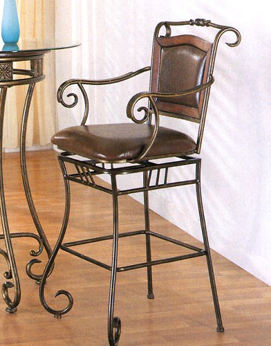 This elegant bar stool set is a great way to add beauty to any area also in need of extra seating with some height. A wonderful addition to your kitchen or dining room dcor, and perfect for casual or formal entertaining. Sold in pairs. The seat and backrest are both padded for extra comfort and feature coordinating upholstery. These barstools feature padded seats and backs and curved metal frames for the ultimate in style and comfort. * Dark, sleek metal frame consists of curvaceous arms and legs. Upholstered seat and back add to comfort. Seat height: 29 in.. Overall: 23 in. W x 21 in. D x 45 in. H. Warranty The dramatic designs of this metal bar stool will welcome elegant character into your casual dining area. Whether you arrange with a counter height table or use as additional seating, this metal bar stool will make bold statement in your home.